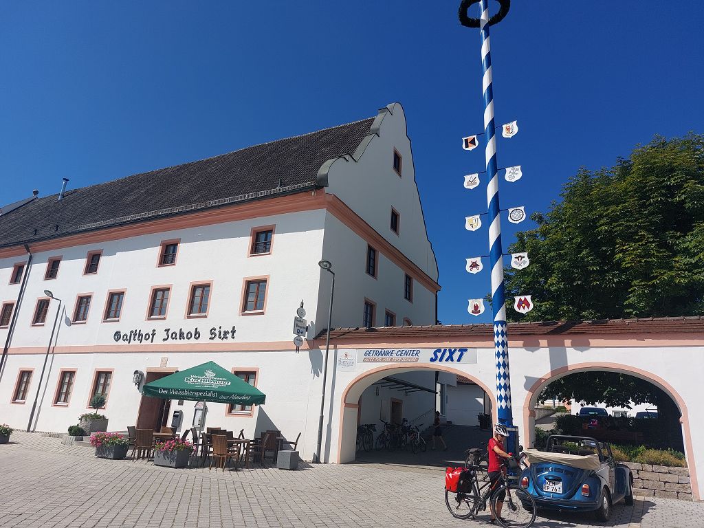 Die Strecke führte uns sanft hügelig vorbei an Hopfenfeldern und beschaulichen kleinen Dörfern zu unserem heutigen Ziel Abensberg. Ca. 10 km vor unserem Ziel bietet das Kloster Rohr und ein herrlicher Gastgarten noch Gelegenheit für eine letzte Pause.